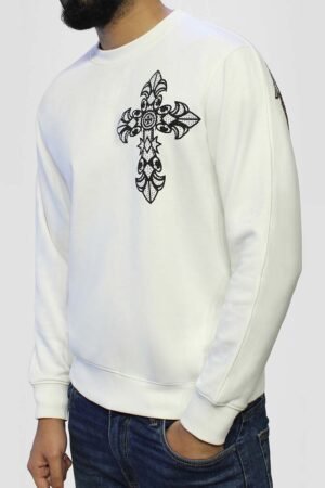 Cross and Wing Crystal Embellished Sweatshirt